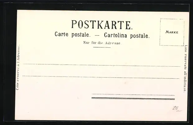 Personenbezogene Daten auf der Rückseite der Karte wurden durch blauen Textmarker unkenntlich gemacht. Die blauen Stellen sind auf die Vorderseite durchgeweicht und wirken sich negativ auf das Postkartenfoto aus