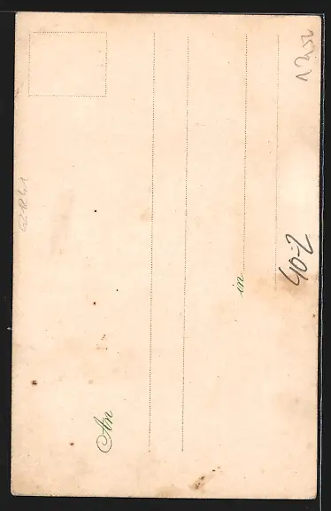 Personenbezogene Daten auf der Rückseite der Karte wurden durch blauen Textmarker unkenntlich gemacht. Die blauen Stellen sind auf die Vorderseite durchgeweicht und wirken sich negativ auf das Postkartenfoto aus