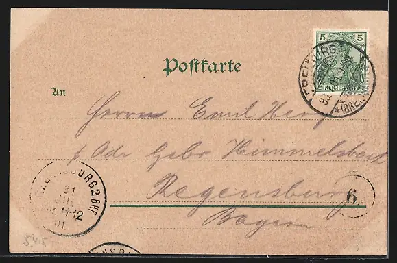 gelaufen 1901, Eckknick li. unten, guter Zustand