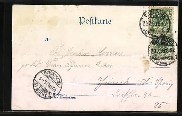 gelaufen 1899, Eckknick re. oben, guter Zustand