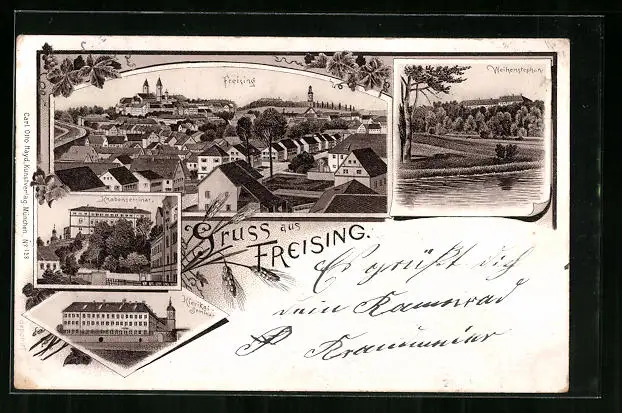 Lithographie Freising, Knabenseminar, Klerikal-Seminar, Weihenstephan
