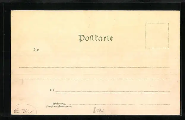 Personenbezogene Daten auf der Rückseite der Karte wurden durch blauen Textmarker unkenntlich gemacht. Die blauen Stellen sind auf die Vorderseite durchgeweicht und wirken sich negativ auf das Postkartenfoto aus