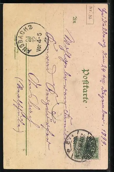 gelaufen 1899, Eckknick re. oben, Abriebspur re. unten, guter Zustand