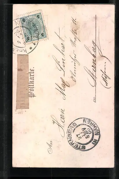 gelaufen 1900, rückseitig Klebe- und Papierreste, Papierrest Kante unten mittig, guter Zustand