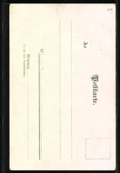 Personenbezogene Daten auf der Rückseite der Karte wurden durch blauen Textmarker unkenntlich gemacht. Die blauen Stellen sind auf die Vorderseite durchgeweicht und wirken sich negativ auf das Postkartenfoto aus