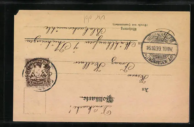 gelaufen 1899, Eckschaden re. unten, guter Zustand