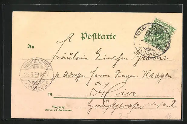 Personenbezogene Daten auf der Rückseite der Karte wurden durch blauen Textmarker unkenntlich gemacht. Die blauen Stellen sind auf die Vorderseite durchgeweicht und wirken sich negativ auf das Postkartenfoto aus