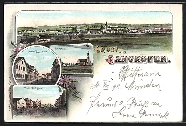 Lithographie Gangkofen, Heiligenstadt, Unterer Marktplatz, Oberer Marktplatz