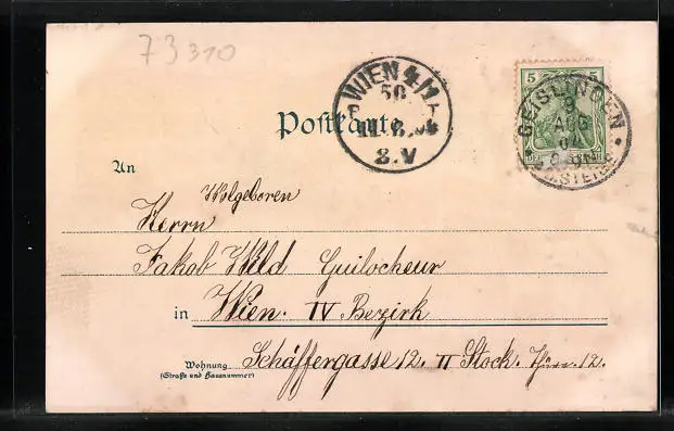 gelaufen 1904, kl. Einriss li. mittig, guter Zustand