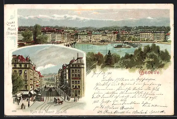 Lithographie Genève, Quai du Mont Blanc, Rue du Mont Blanc
