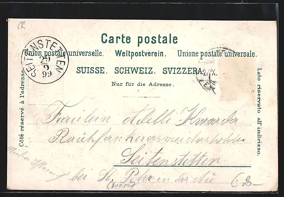 gelaufen 1899, Briefmarke entfernt, guter Zustand