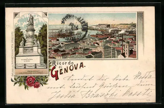 Lithographie Genova, Monumento a Cristoforo Colombo, Panorama