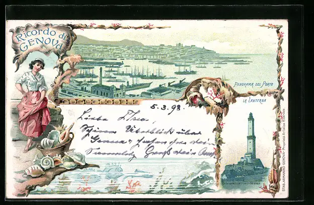 Lithographie Genova, Panorama del Porto, La Lanterna
