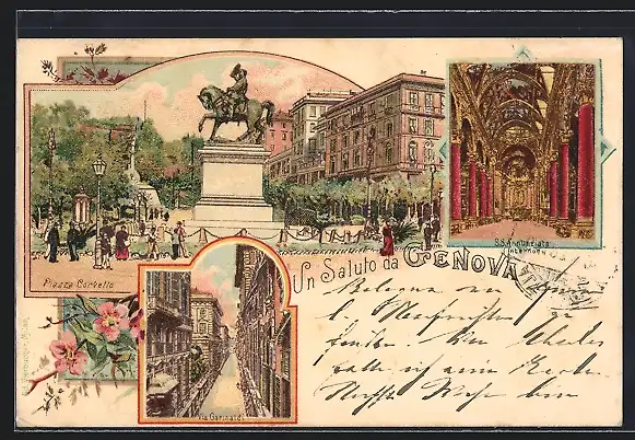 Lithographie Genua / Gênes, Hotel Central, Via Garibaldi, Piazza Corvetto