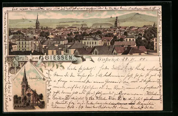 Lithographie Giessen, Johannes-Kirche, Gesamtansicht