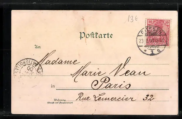 gelaufen 1900, Eckknick links unten, guter Zustand