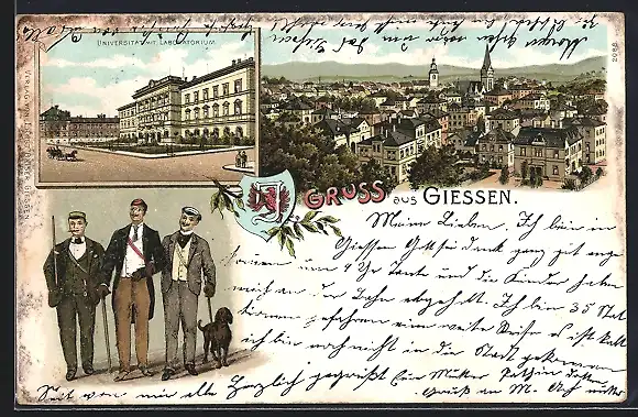 Lithographie Giessen, Ortsansicht mit Universität und Laboratorium