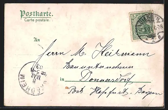 gelaufen 1903, Eckknick li. unten, guter Zustand