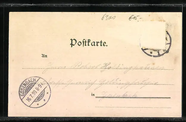 gelaufen 1899, Briefmarke entfernt, rückseitig Oberflächenschaden, guter Zustand