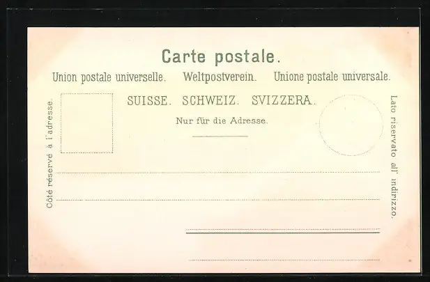 Personenbezogene Daten auf der Rückseite der Karte wurden durch blauen Textmarker unkenntlich gemacht. Die blauen Stellen sind auf die Vorderseite durchgeweicht und wirken sich negativ auf das Postkartenfoto aus