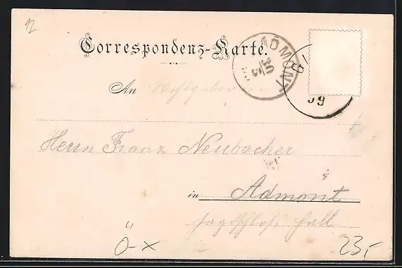 gelaufen 1899, Briefmarke entfernt, guter Zustand