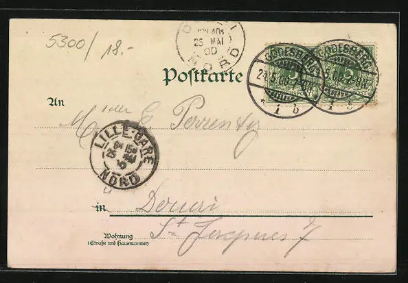 gelaufen 1900, Eckknick re. unten, guter Zustand