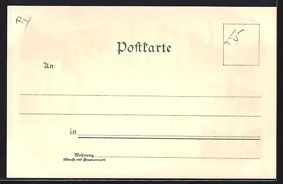 Personenbezogene Daten auf der Rückseite der Karte wurden durch blauen Textmarker unkenntlich gemacht. Die blauen Stellen sind auf die Vorderseite durchgeweicht und wirken sich negativ auf das Postkartenfoto aus