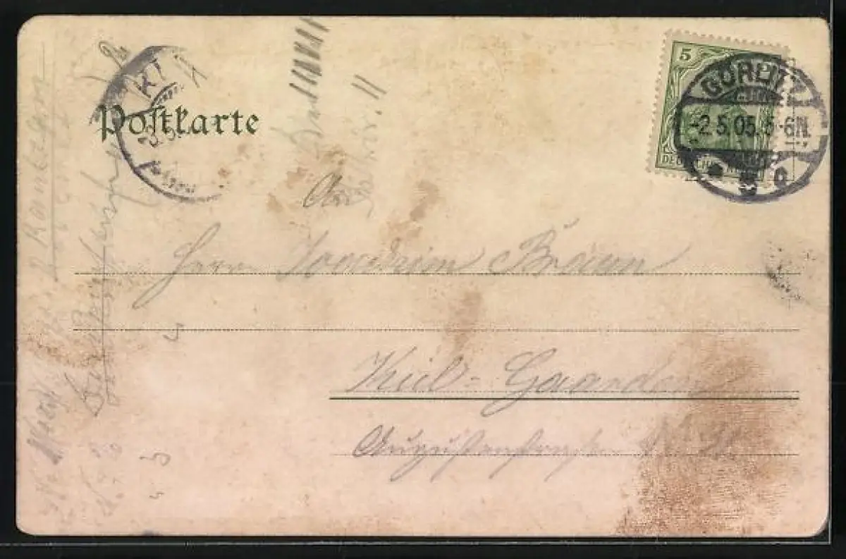 gelaufen 1905, Eckknick unten links, Stempelspur, guter Zustand