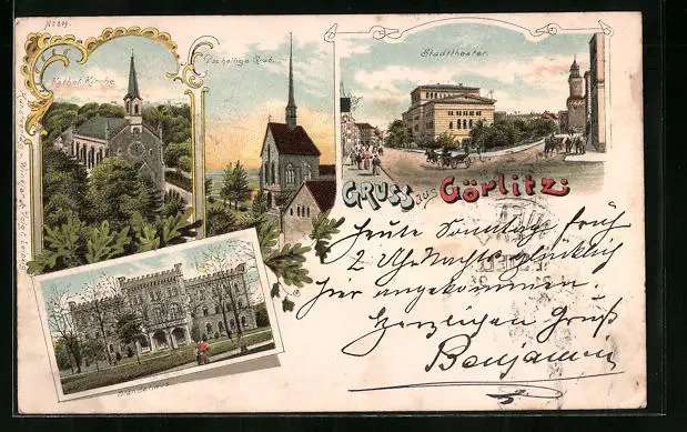 Lithographie Görlitz, Stadttheater und Ständehaus