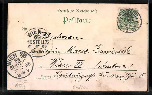 gelaufen 1898, Stempelspur, Eckknick re. unten, Bugspur mittig, guter Zustand