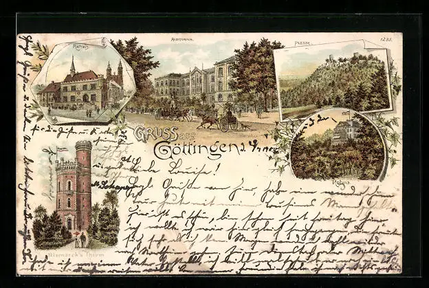 Lithographie Göttingen, Auditorium, Plesse, Rathaus, Haus Rohns