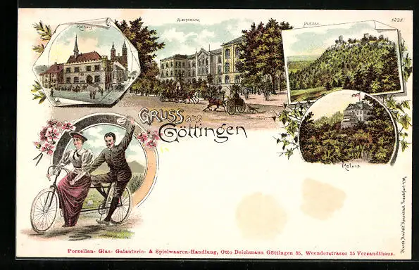 Lithographie Göttingen, Auditorium, Rathaus und Plesse