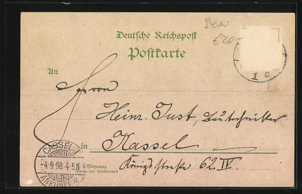 gelaufen 1898, Briefmarke entfernt, rückseitig Oberflächenschaden, guter Zustand