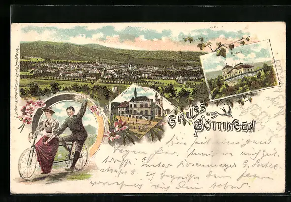 Lithographie Göttingen, Gesamtansicht, Rathaus, Rohns