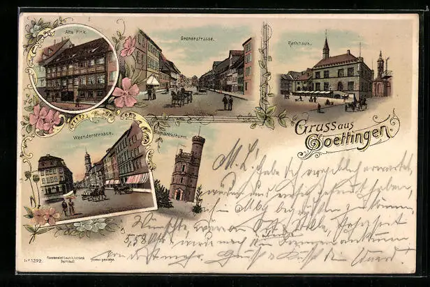 Lithographie Göttingen, Gronerstrasse, Alte Fink, Weenderstrasse