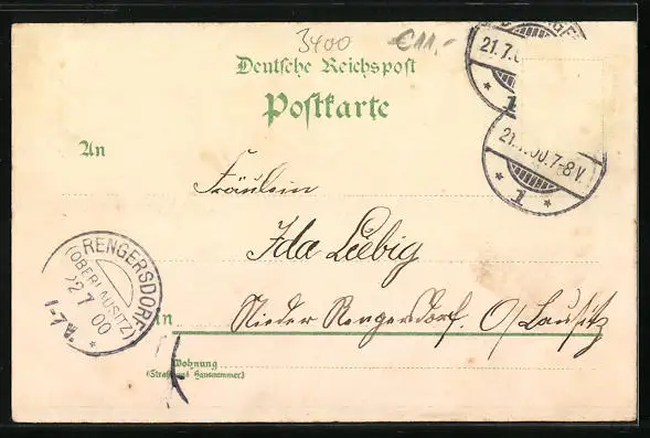 gelaufen 1900, Briefmarke entfernt, Eckknick unten li., guter Zustand