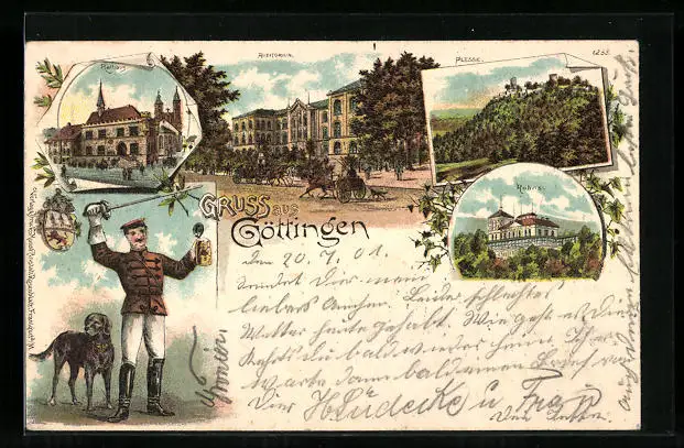 Lithographie Göttingen, Plesse, Rathaus, Rohns