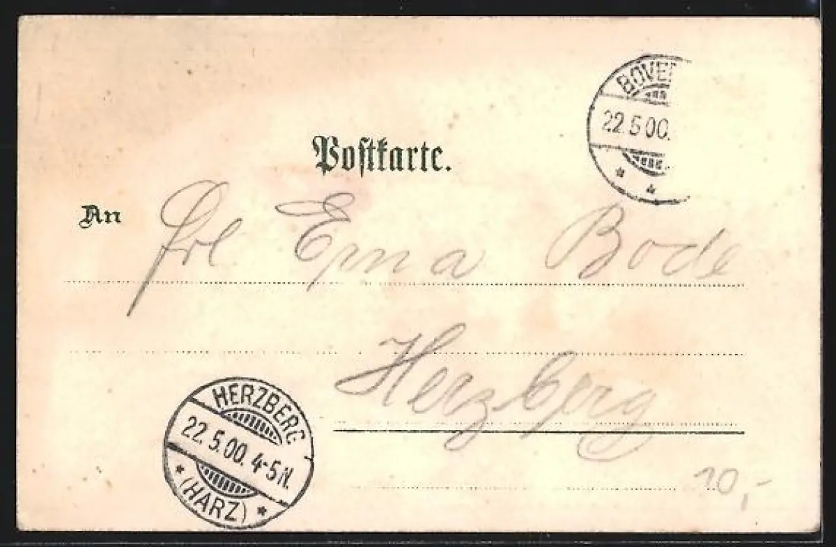 gelaufen 1900, Briefmarke entfernt, guter Zustand
