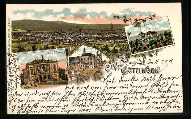 Lithographie Göttingen, Stadt-Theater, Rohns, Ortsansicht