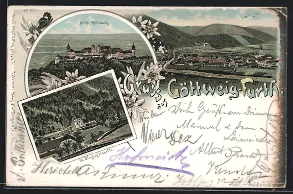 Lithographie Göttweig-Furth, Stift Göttweig, St. Blasius-Kapelle, Gesamtansicht