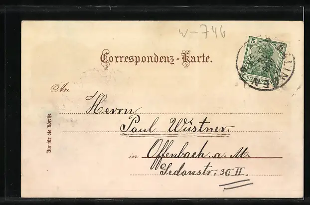 Personenbezogene Daten auf der Rückseite der Karte wurden durch blauen Textmarker unkenntlich gemacht. Die blauen Stellen sind auf die Vorderseite durchgeweicht und wirken sich negativ auf das Postkartenfoto aus