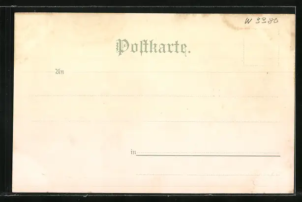 Personenbezogene Daten auf der Rückseite der Karte wurden durch blauen Textmarker unkenntlich gemacht. Die blauen Stellen sind auf die Vorderseite durchgeweicht und wirken sich negativ auf das Postkartenfoto aus