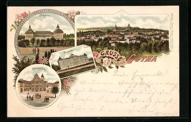 Lithographie Gotha, Totalansicht, Schloss, Museum, Markt