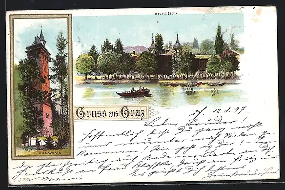 Lithographie Graz, Ansicht Milchwarte und Hilmteich