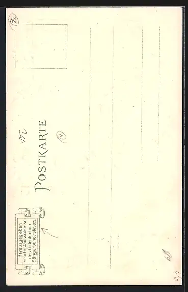 Personenbezogene Daten auf der Rückseite der Karte wurden durch blauen Textmarker unkenntlich gemacht. Die blauen Stellen sind auf die Vorderseite durchgeweicht und wirken sich negativ auf das Postkartenfoto aus