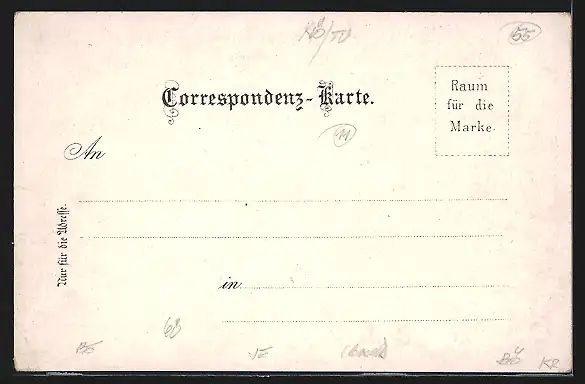 Personenbezogene Daten auf der Rückseite der Karte wurden durch blauen Textmarker unkenntlich gemacht. Die blauen Stellen sind auf die Vorderseite durchgeweicht und wirken sich negativ auf das Postkartenfoto aus
