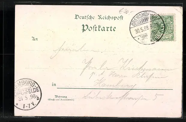 gelaufen 1898, Eckknick oben li., Bugspur unten li., guter Zustand