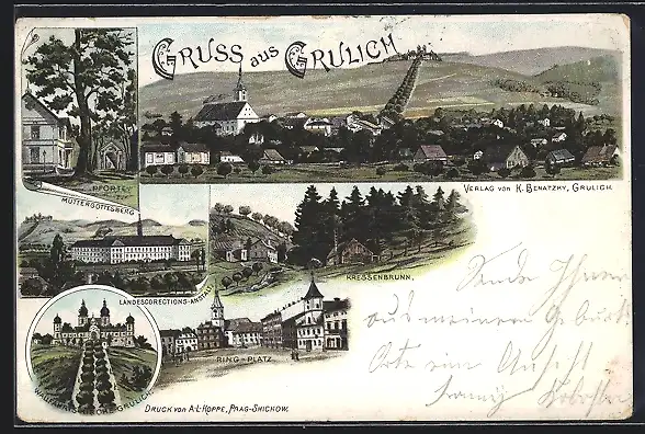 Lithographie Grulich, Kressenbrunn, Wallfahrtskirche, Pforte zum Muttergottesberg