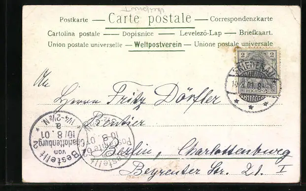 gelaufen 1901, Eckknicke oben, guter Zustand