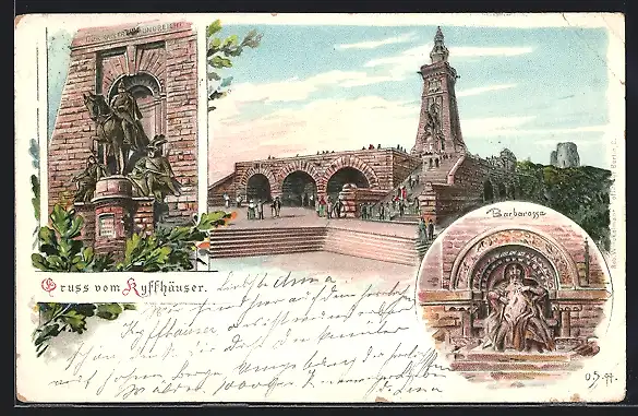 Lithographie Gruss vom Kyffhäuser, Barbarossa, Kyffhäuser-Denkmal